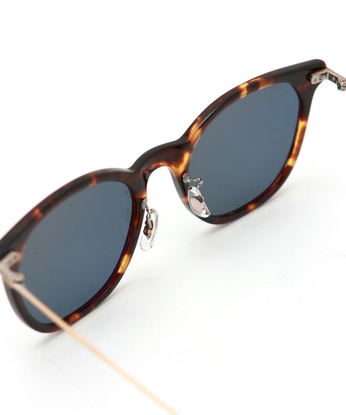 【デザイン】EYEVAN(アイヴァン)のサングラス。フロントにEYEVANのアイコンであるヨロイの1PIN、1SCREWの止め方を採用し、ヨロイ裏をフレンチヴィンテージから着想を得たパーツで補強し、 チタンPINでかしめるという非常に凝った構造のサングラス。フロントデザインは、ウェリントンにペンタゴンシェイプシェイプをミックスしてアレンジ。 レンズにはオリジナルカラーの3ベースレンズを使用。