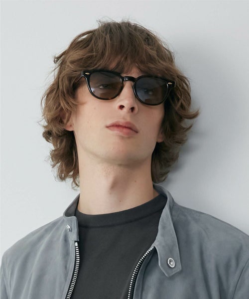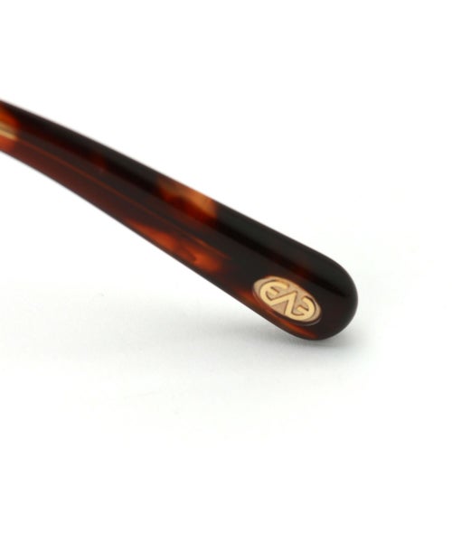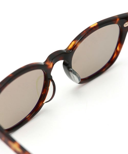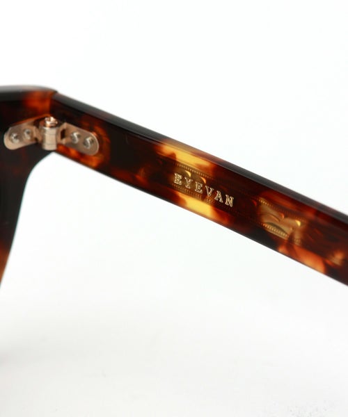 【デザイン】EYEVAN(アイヴァン)のサングラス。ボストンウェリントンフロントに、オリジナルのカシメ飾り丁番を採用したプラスチックサングラス。 テンプル芯には、クラシックカーのパーツからインスパイアされた柄を表裏に彫り込んだオリジナル芯を使い、シンプルな中にもEYEVANらしい世界観を表現した。 レンズにはオリジナルカラーの2ベースの偏光レンズを採用。