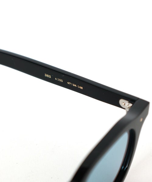 【デザイン】EYEVAN(アイヴァン)のサングラス。全体的にエッジが立ったフォルムが印象的な[349]シリーズのNEWモデルである本モデル[363]は、2023SSモデル[343]のレンズシェイプを採用しています。2000年代初頭にリリースされたドメスティックブランドの眼鏡からインスパイアされたこのシリーズは、美しい艶のある表面と鋭角な縁は通常の5倍以上の時間を掛けて職人の手磨きによって製作されました。ディテールはオリジナルの丁番(1PIN仕様)に10金PINを用いた特別な仕様。ヴィンテージにはない、今現在生きている人間達のアイデアと技術で作りあげたコンテンポラリーな名品がまた一つコレクションに加わっています。サングラスは色味の調合を金属の粒子などを混ぜ合わせて調色し、溶解後に一枚ずつ成形して製作する日本製ガラスレンズのオリジナル“アイヴァンカーブレンズ”を採用しています。