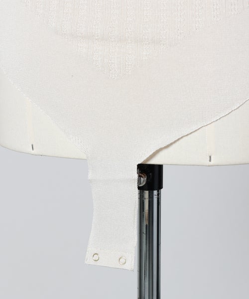 【素材】 シャープで上品な光沢感を放つ糸を使用し、洗練された印象に仕上げました。レーヨンベースの編地は柔らかくなめらかな肌触りで、素肌に心地よくフィット。ナチュラルなストレッチ性を備え、身体の動きにしなやかに寄り添います。軽やかさと程よいフィット感を兼ね備えた、着心地にもこだわった素材です。