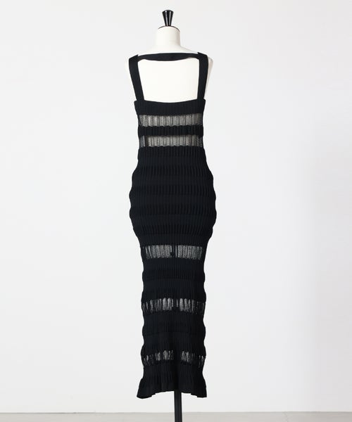 【FETICO(フェティコ)】 SHEER STRIPE KNIT LONG DRESS