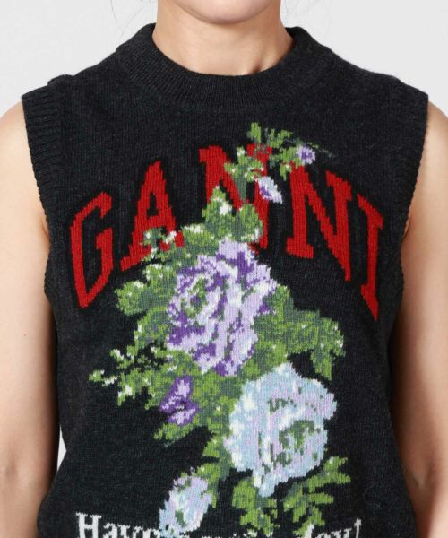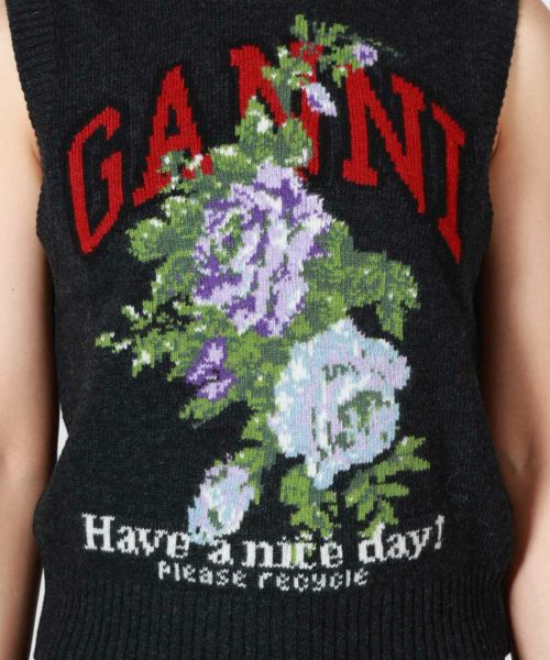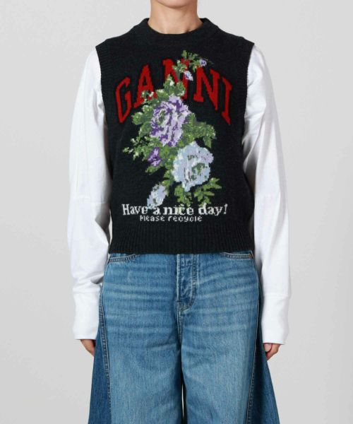 【GANNI(ガニー)】 GRAPHIC WOOL MIX FLOWERS VEST