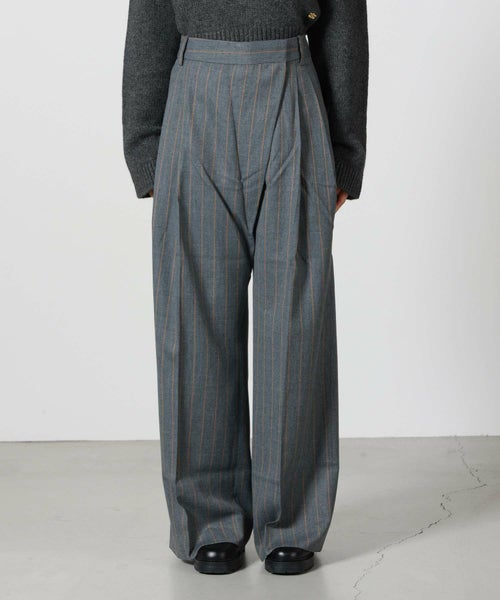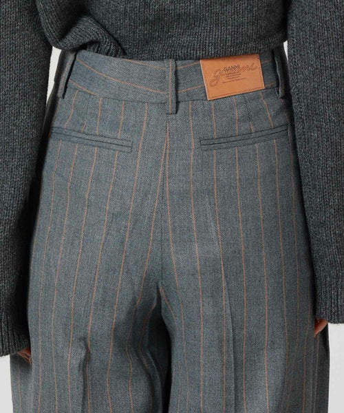 【GANNI(ガニー)】 Grey Stripe Cross-over Trousers