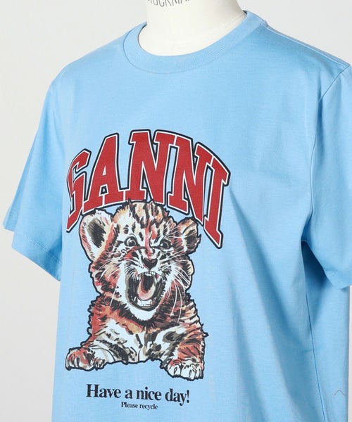 【GANNI(ガニー)】 Blue Relaxed Jersey Tiger T-shirt