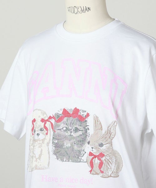 【GANNI(ガニー)】 White Animals Print T-shirt