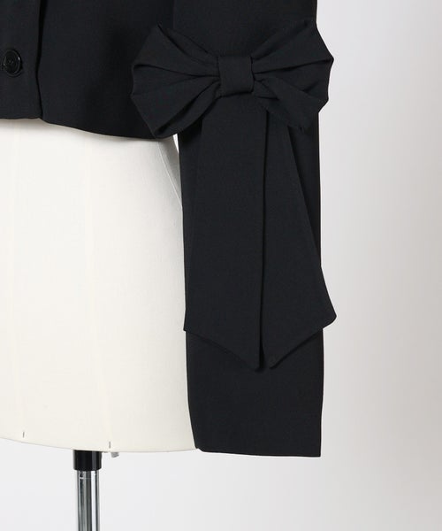 【デザイン】GANNI(ガニー)のジャケット。クラシカルなテーラードデザインをベースに、ショート丈でエルボーラインにリボンモチーフを大胆にあしらい、モダンなエッセンスが加わった一着です。きちんと感を演出しながらも、堅くなりすぎないバランスで個性の光るアイテムに仕上がっています。