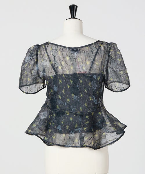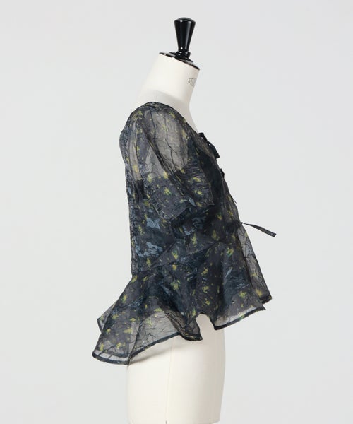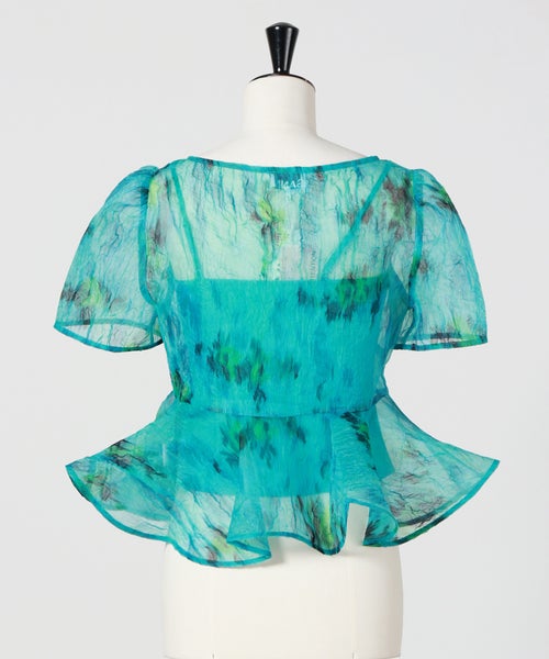 【GANNI(ガニー)】 Printed Shibori Organza Sun Cut Peplum Blouse