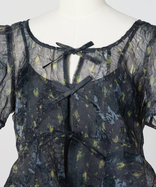 4. 【GANNI(ガニー)】 Printed Shibori Organza Sun Cut Peplum Blouse