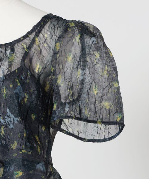【素材】 軽やかで透け感のあるポリエステル100%素材を使用。触れた瞬間に感じるさらりとしたドライなタッチと、空気をはらむようなエアリーな着心地が特徴です。見た目にも繊細で上品なシアー感があり、スタイリングに奥行きをプラス。シワになりにくく扱いやすい一方で、伸縮性がないため、動きやすさを重視する場合はサイズ感にゆとりを持たせるのがおすすめです。