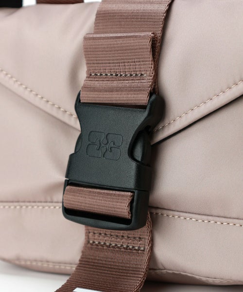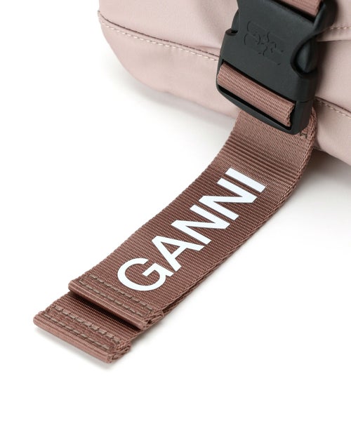 【デザイン】 GANNI(ガニー)のミニショルダーバッグ。留め具部分にはGANNI(ガニー)のブランドマークが入施されたアイコニックなアイテム。ナイロン素材でアクティブなシーンにもご活躍頂けるバックです。ショルダーストラップ付で、クロスボディにも対応可能。コンパクトながら必要最低限のものはしっかり収納してくれるので、普段使いにもピッタリのバックです。