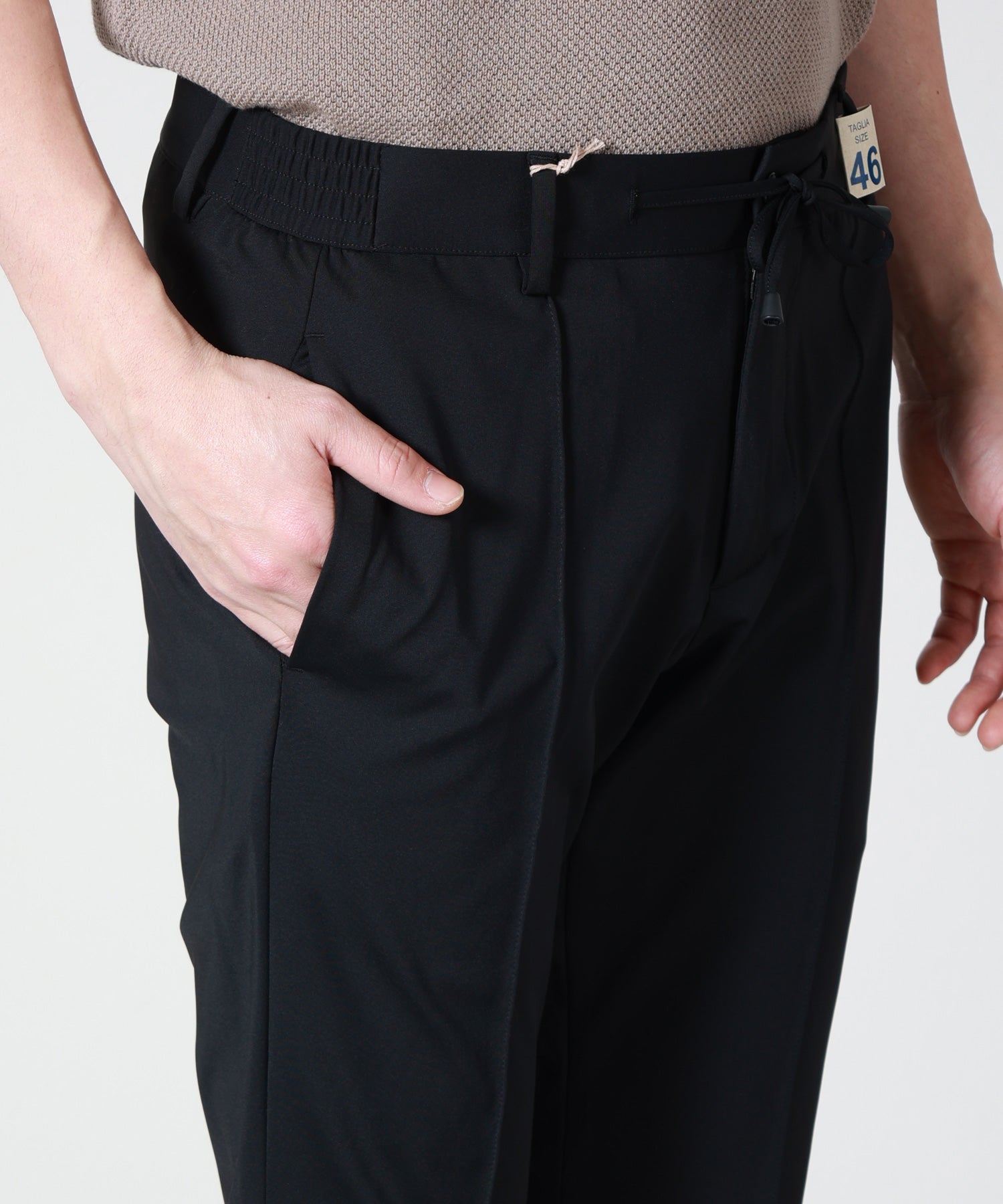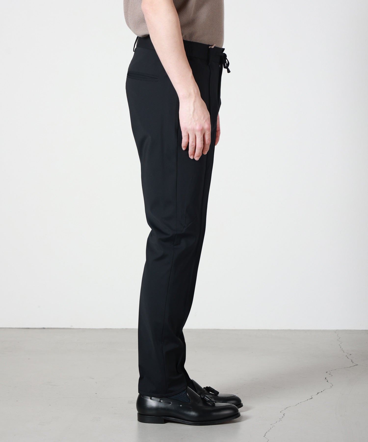 giabsarchivio(ジャブスアルキヴィオ)はGIAB’S(ジャブス)社の歴史的背景、半世紀以上トラウザーズ専業ファクトリーとして培ってきたノウハウをベースに、イタリア・ミラノにてセレクトショップのバイヤーやイタリアンブランドのディレクションなど多方面で活躍中のミラノ在住の日本人、中新井 淳平氏のディレクションにより、モダンかつハイエンドなトラウザーズコレクションを展開。履き心地の良さやリラックス感を重視したオリジナルファブリックの開発、クリーンでエレガントなディテールリラックス感がありながら洗練されたシルエットにこだわり、パンツ専業ブランドがひしめくイタリアでも注目を集めています。
