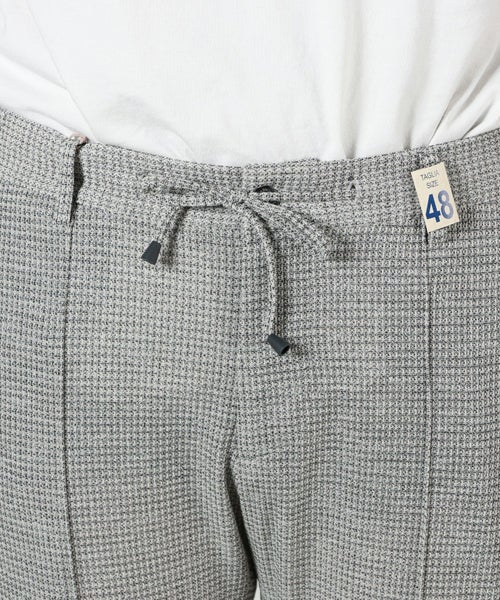 【デザイン】 giabsarchivio(ジャブスアルキヴィオ)の中でも最も人気の高いジャージーテーパードパンツ「MASACCIO(マサッチョ)」。リラックスパンツながらも美しいスリムテーパードシルエットを採用しており、ジャケットスタイルからカジュアルスタイルまで幅広くコーディネート出来るボトムスとして人気を博しています。フロントにはシャープな印象を強調する永久クリースが施されており、脚長効果を生みます。ベルトループが兼備されているため、ベルトを着用するとウェストゴムが隠れる仕様になっています。