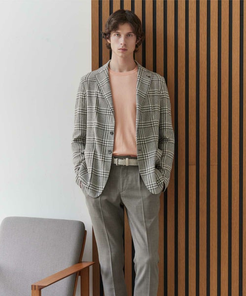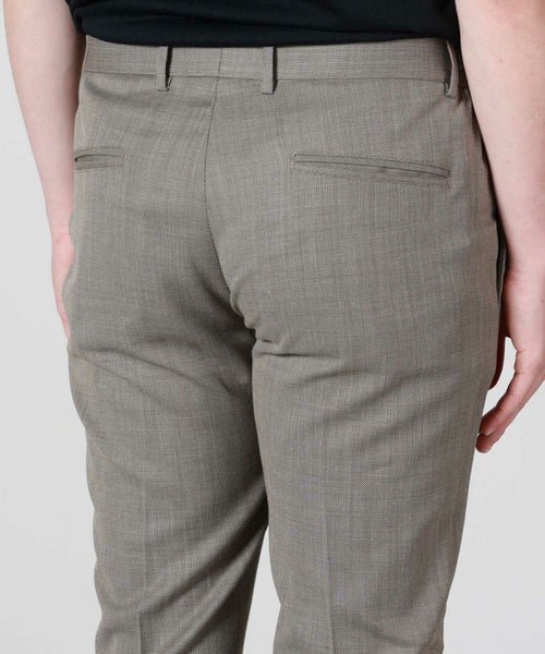 【素材】 目付255gの春夏向けの素材です。ポリエステルにウールを混紡して、よりきれいめな雰囲気に仕上げています。