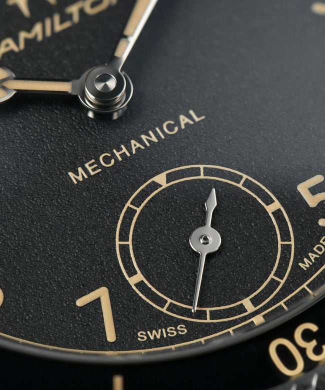 【デザイン】 第二次世界大戦中アメリカ軍に使用されていた、当時最先端のポケットウォッチ「モデル23」からインスピレーションを得た「カーキ アビエーション パイロット パイオニア」。その独特なデザインは、ハミルトンのアビエーションとミリタリーの歴史へのトリビュートです。スポーティで洗練されたこのパイロットウォッチは、機械式手巻きムーブメント、両方向回転ベゼル、玉ねぎ型の大きなリューズといったクラシカルなディテールがヘリテージを色濃く反映しています。43mmサイズのケースには、艶やかなステンレススチールケースと、経年変化によって個性を生み出すブロンズケースをライナップしています。