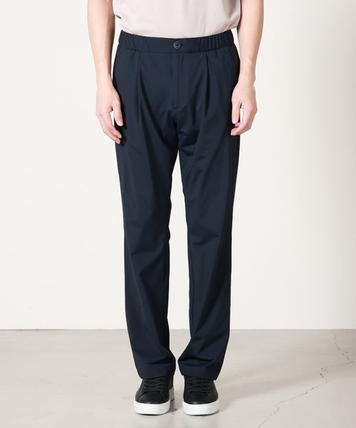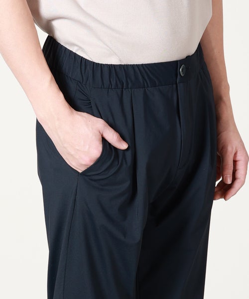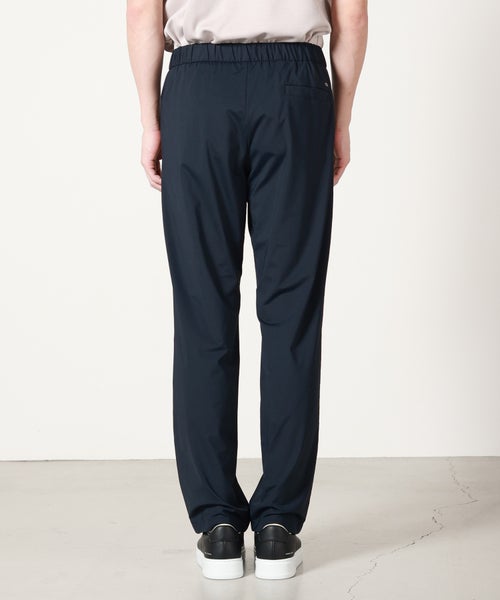 【デザイン】 HERNO(ヘルノ)のパンツ。ナイロンストレッチ素材を使用した1プリーツ仕様のパンツで、腰回りに程よいゆとりを持たせつつ、裾に向かって自然に細くなるテーパードシルエットが特徴です。ワタリはややゆったりめながら、全体のラインはすっきりと見えるバランス設計で、リラックス感と上品さを両立。ウエストゴムとドロストが付いたイージー仕様となっており、長時間の着用でも快適。軽快な素材感を活かしたクリーンな表情で、ジャケットスタイルからカジュアルまで幅広く対応します。シンプルなデザインのため、トップスを選ばず春夏シーズンの着回し力にも優れた一本です。