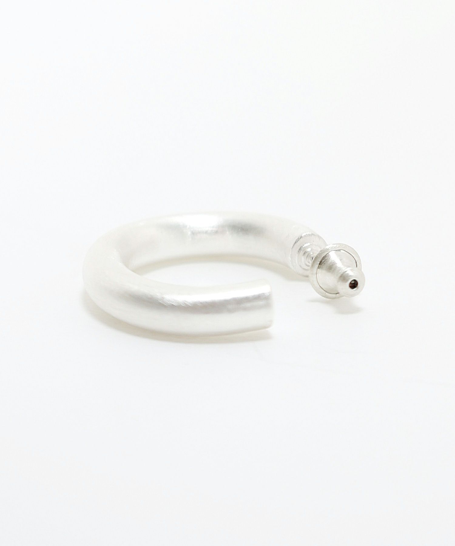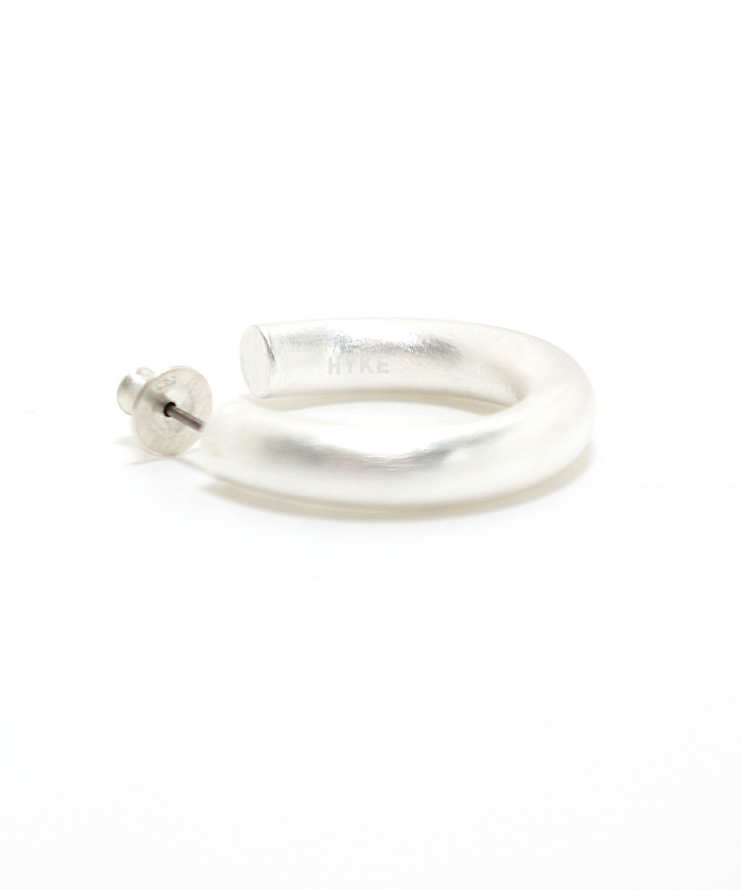 【デザイン】 HYKE(ハイク)のピアス。程良いボリューム感が魅力のフープピアスシルバーです。マットな質感で、顔周りにモードなアクセントをプラスしてくれます。