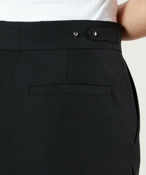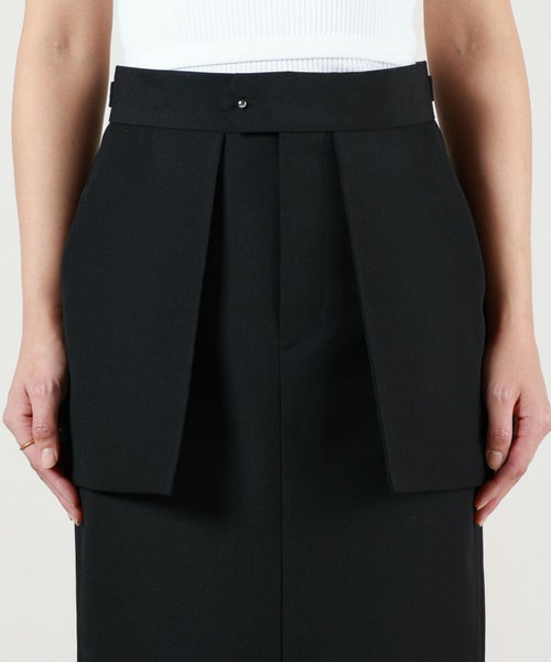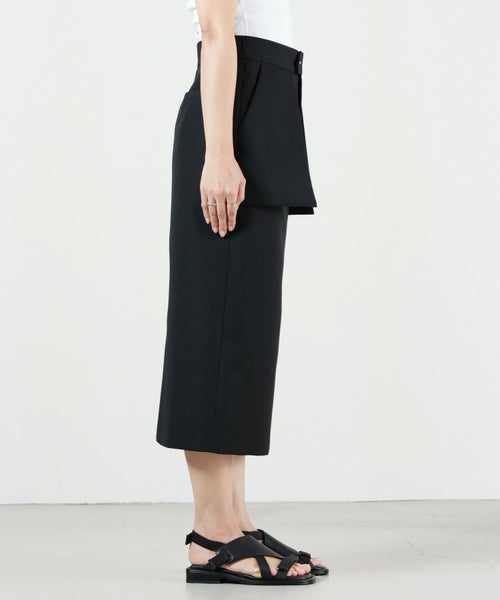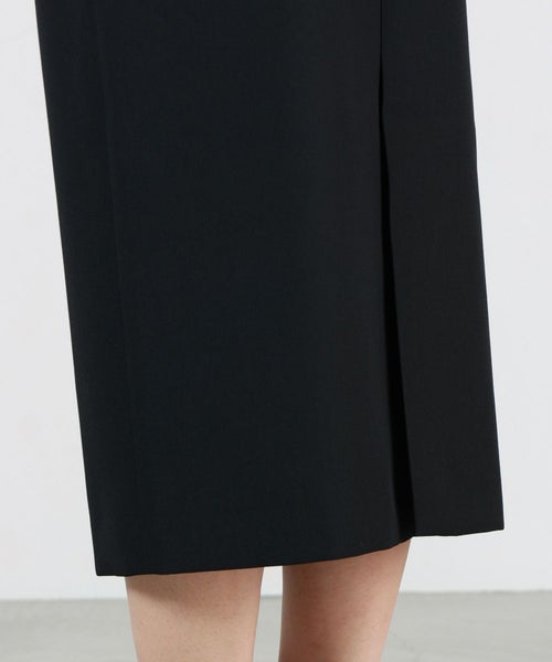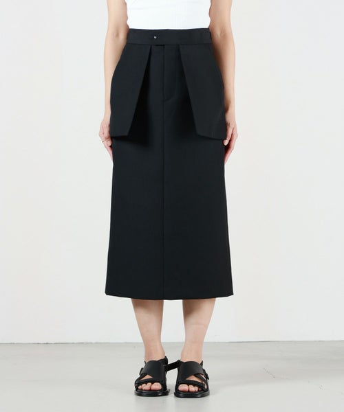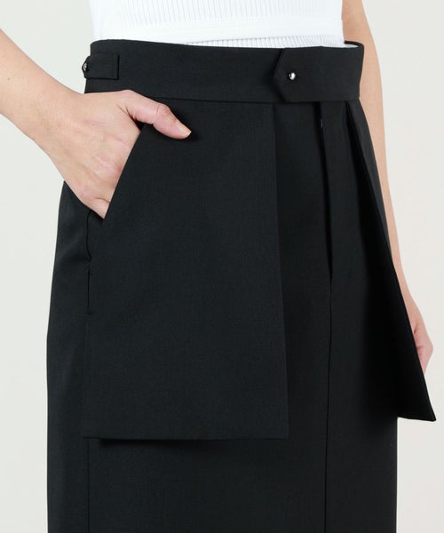 【デザイン】 HYKE(ハイク)のスカート。しっかりとしたハリのある素材を使用しております。共生地のジャケットやジレとセットアップで着用が可能です。