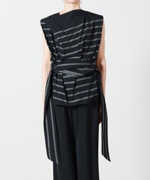 【HYKE(ハイク)】 STRIPE COWL NECK SLEEVELESS BLOUSE