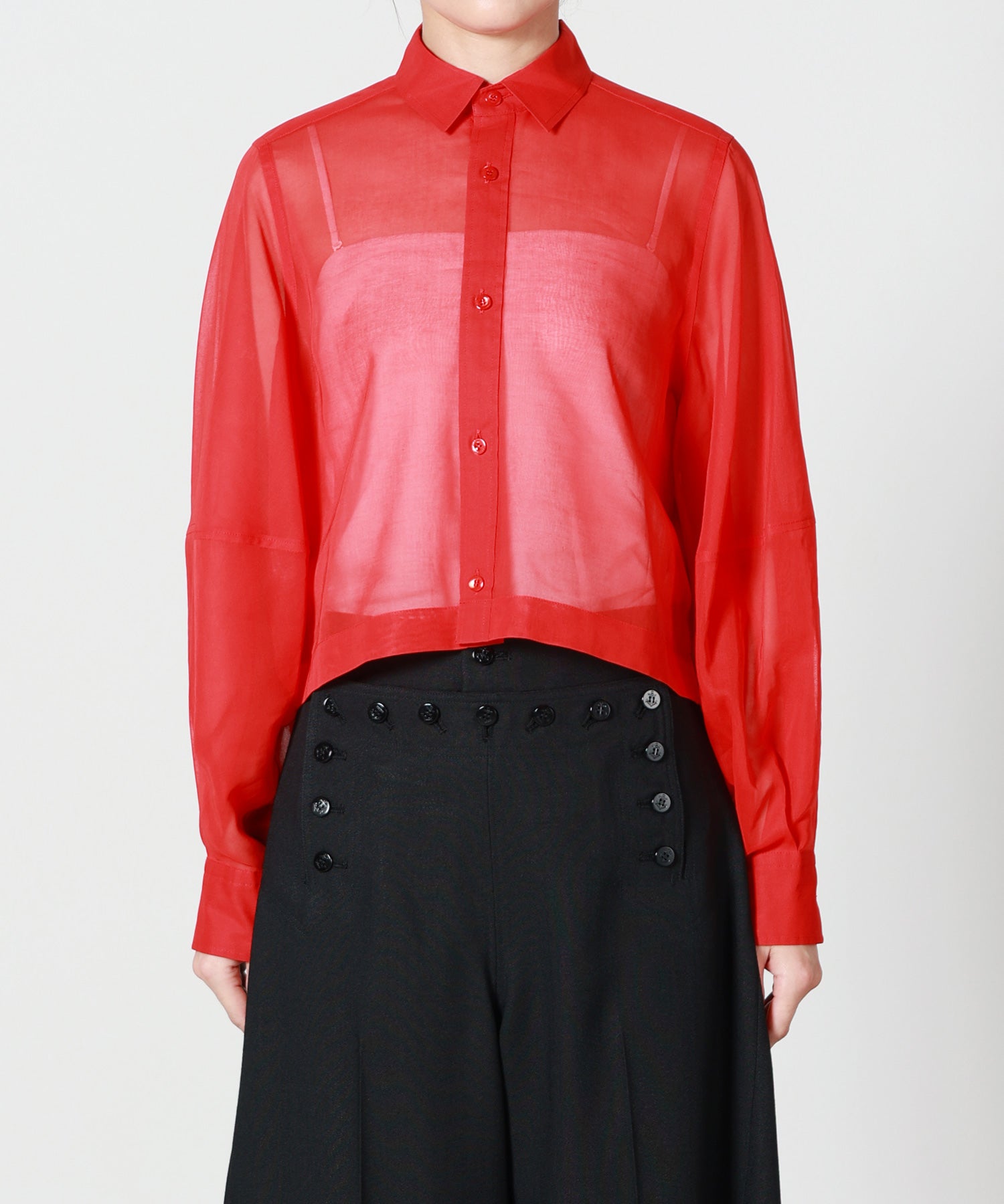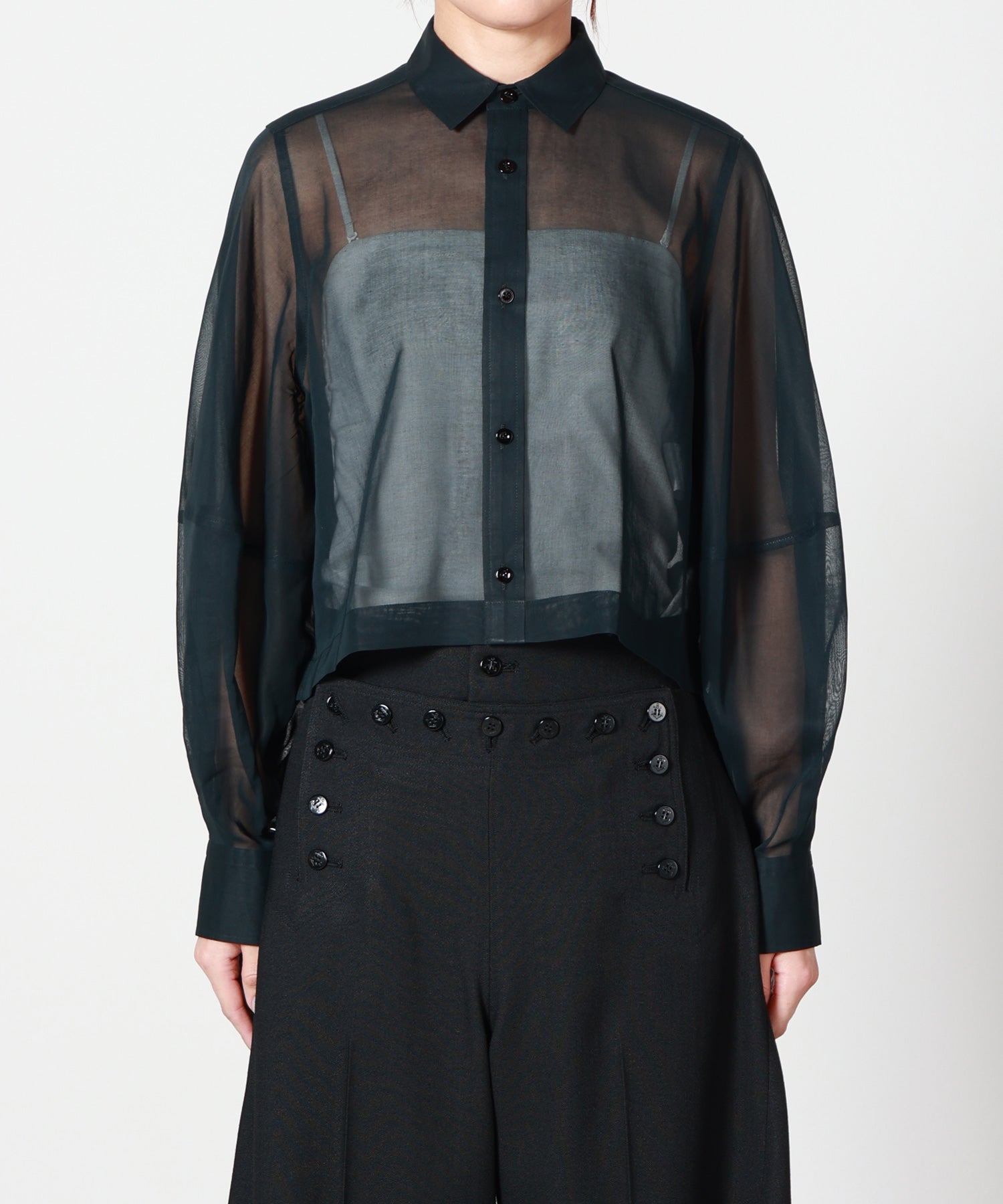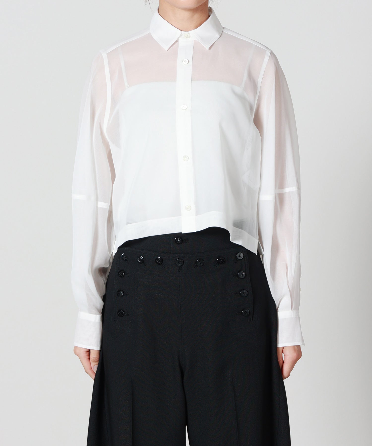 【HYKE(ハイク)】 TC SHEER SLEEVE SAILOR CROPPED BLOUSE