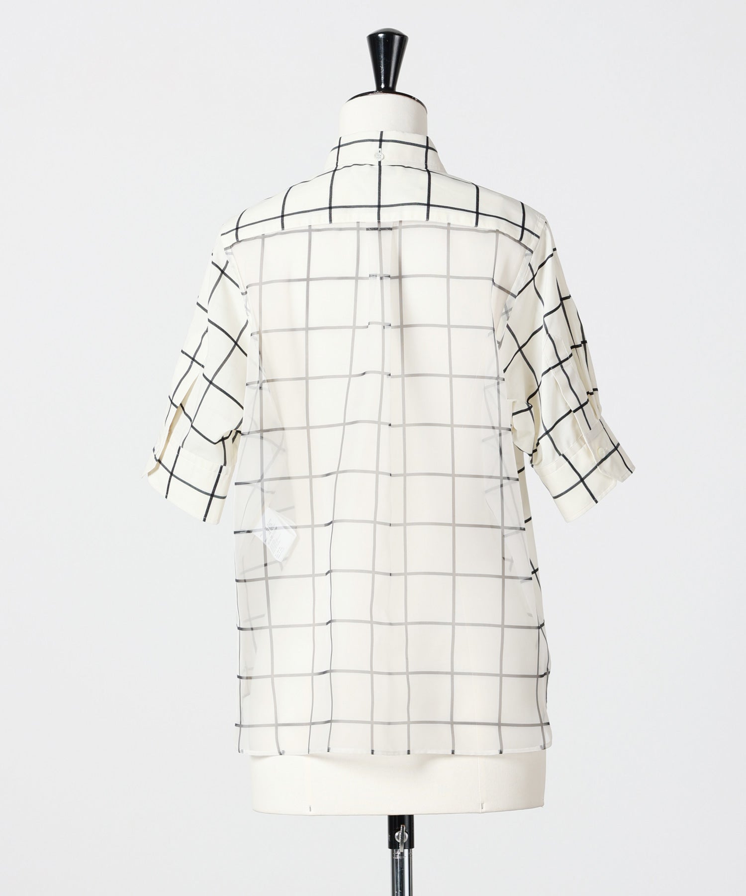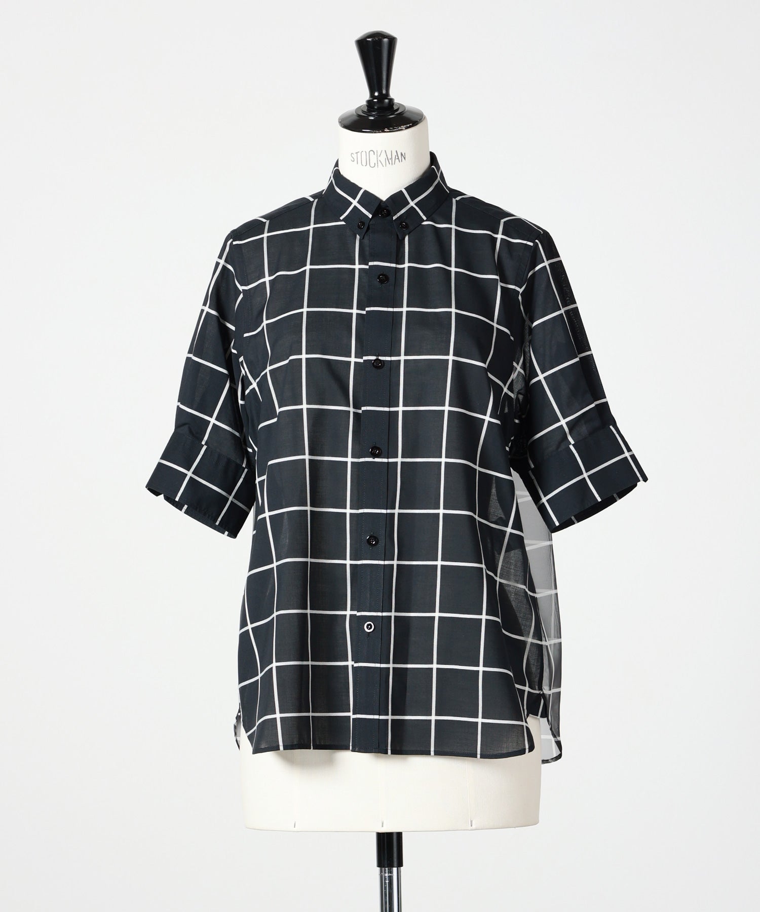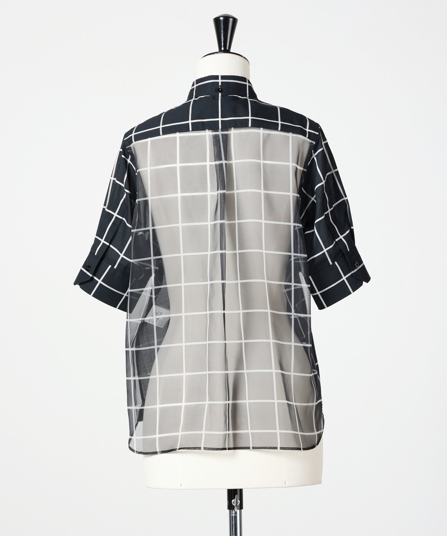 【HYKE(ハイク)】 SHEER BACK WINDOWPANE SHORT SLV BLOUSE