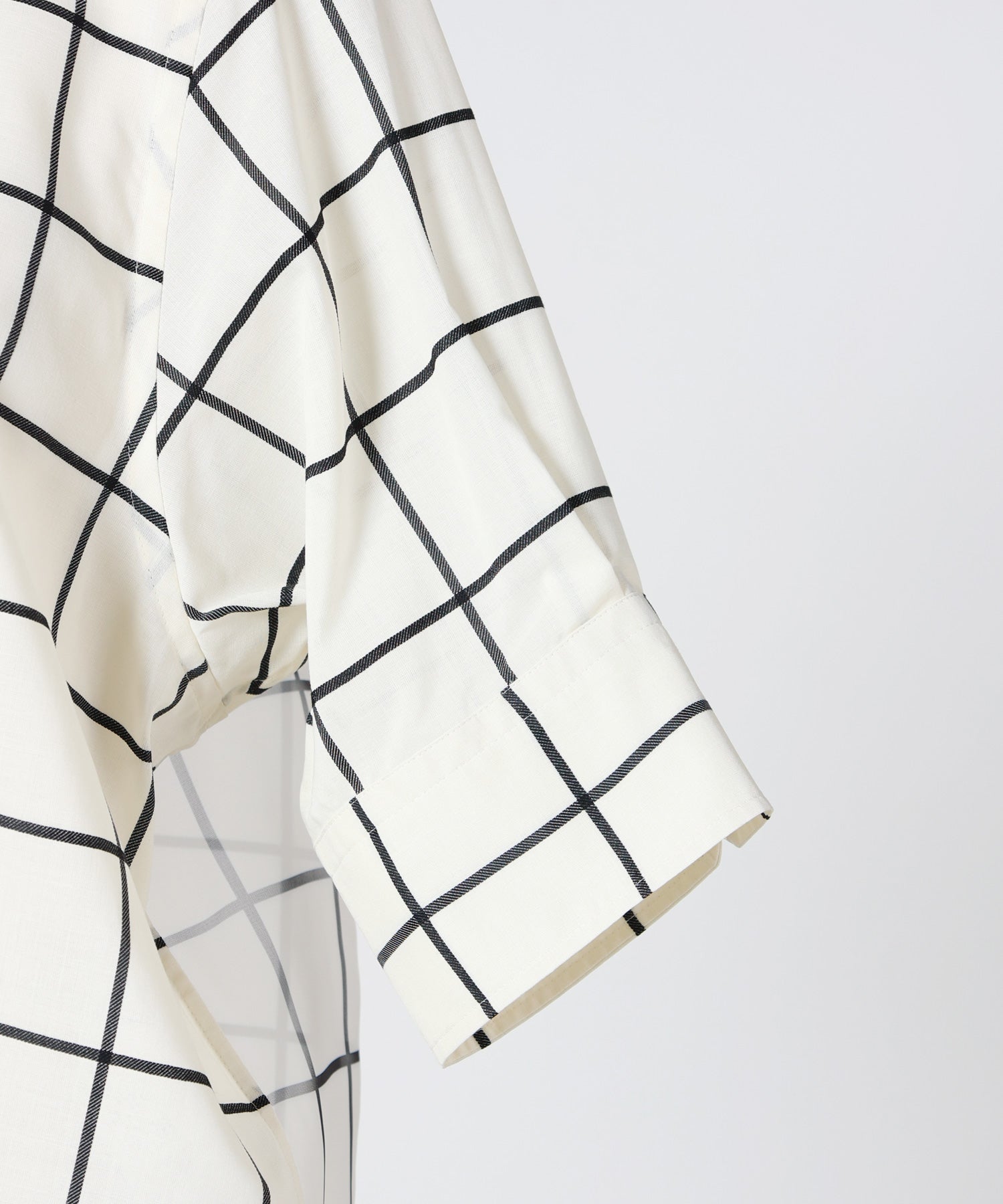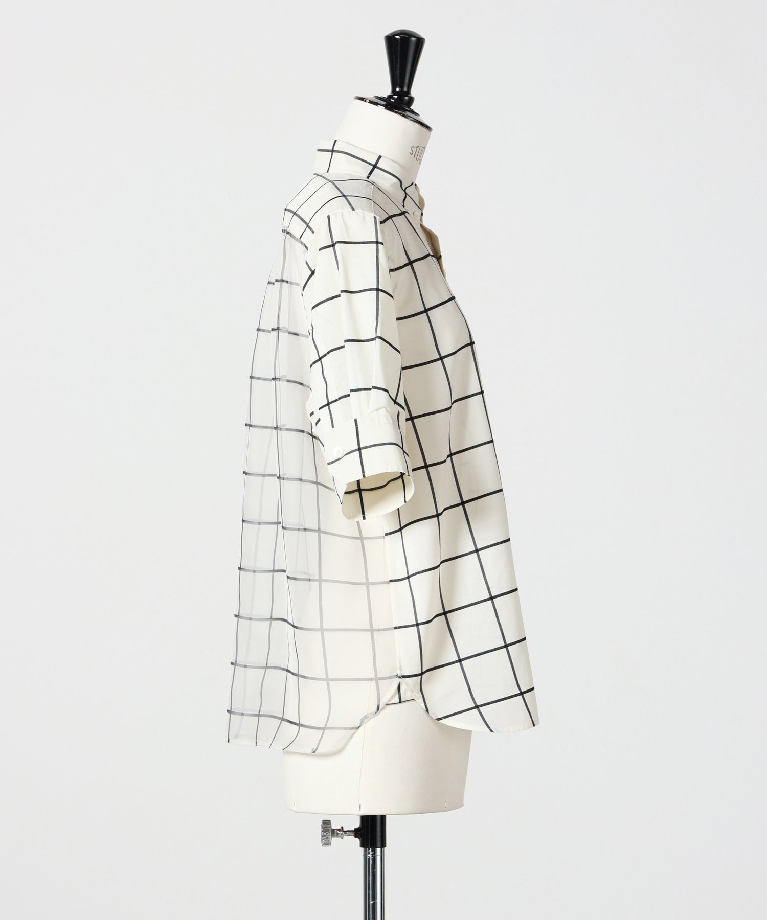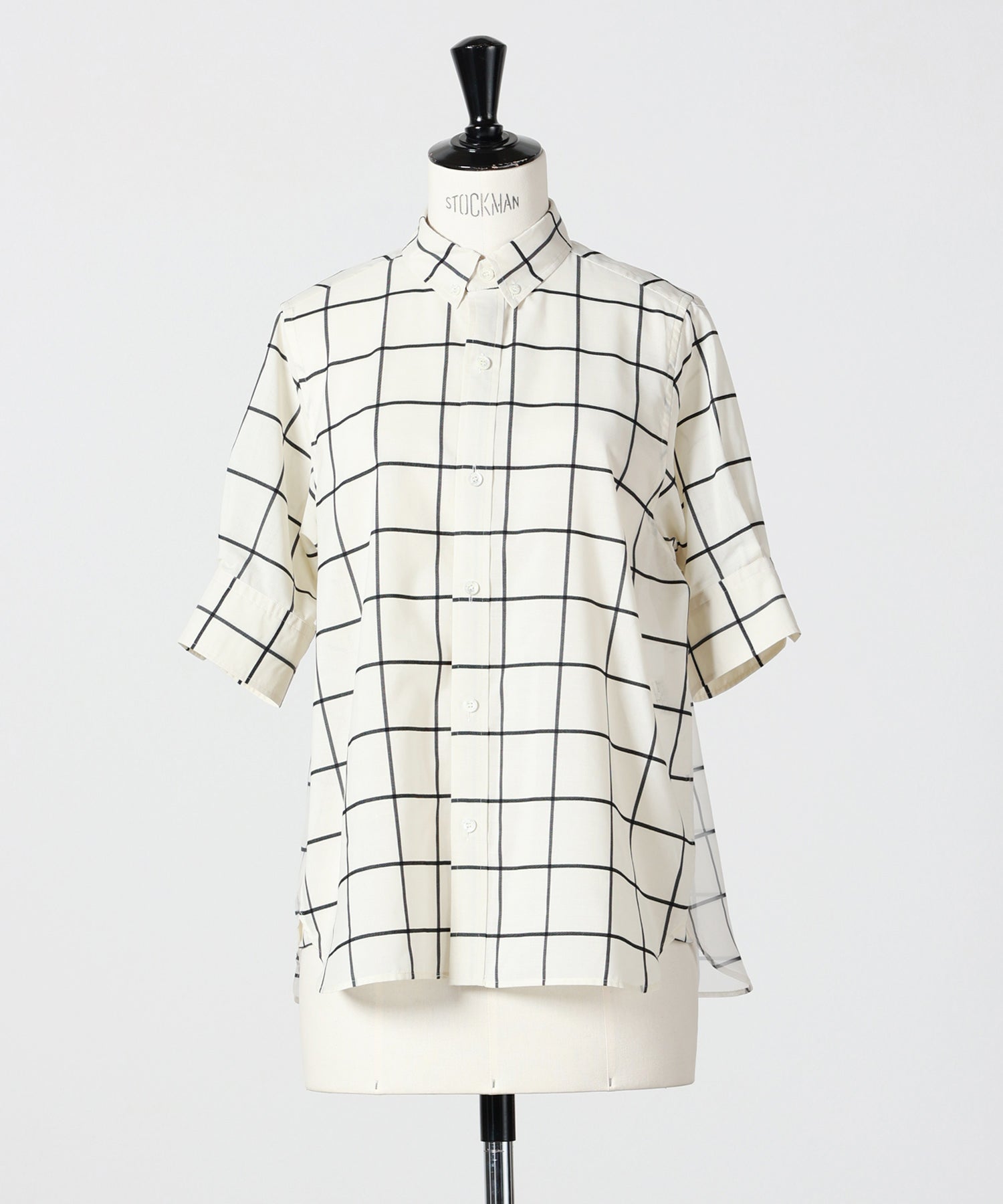 【HYKE(ハイク)】 SHEER BACK WINDOWPANE SHORT SLV BLOUSE