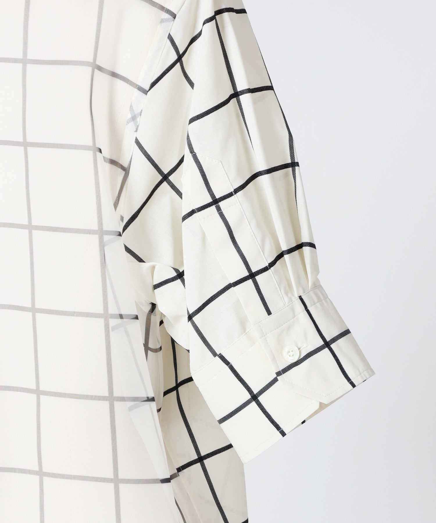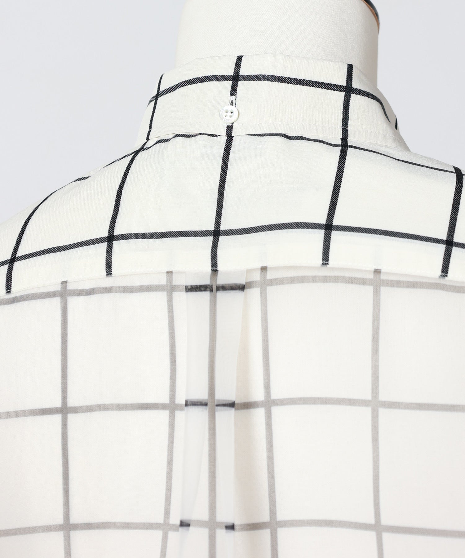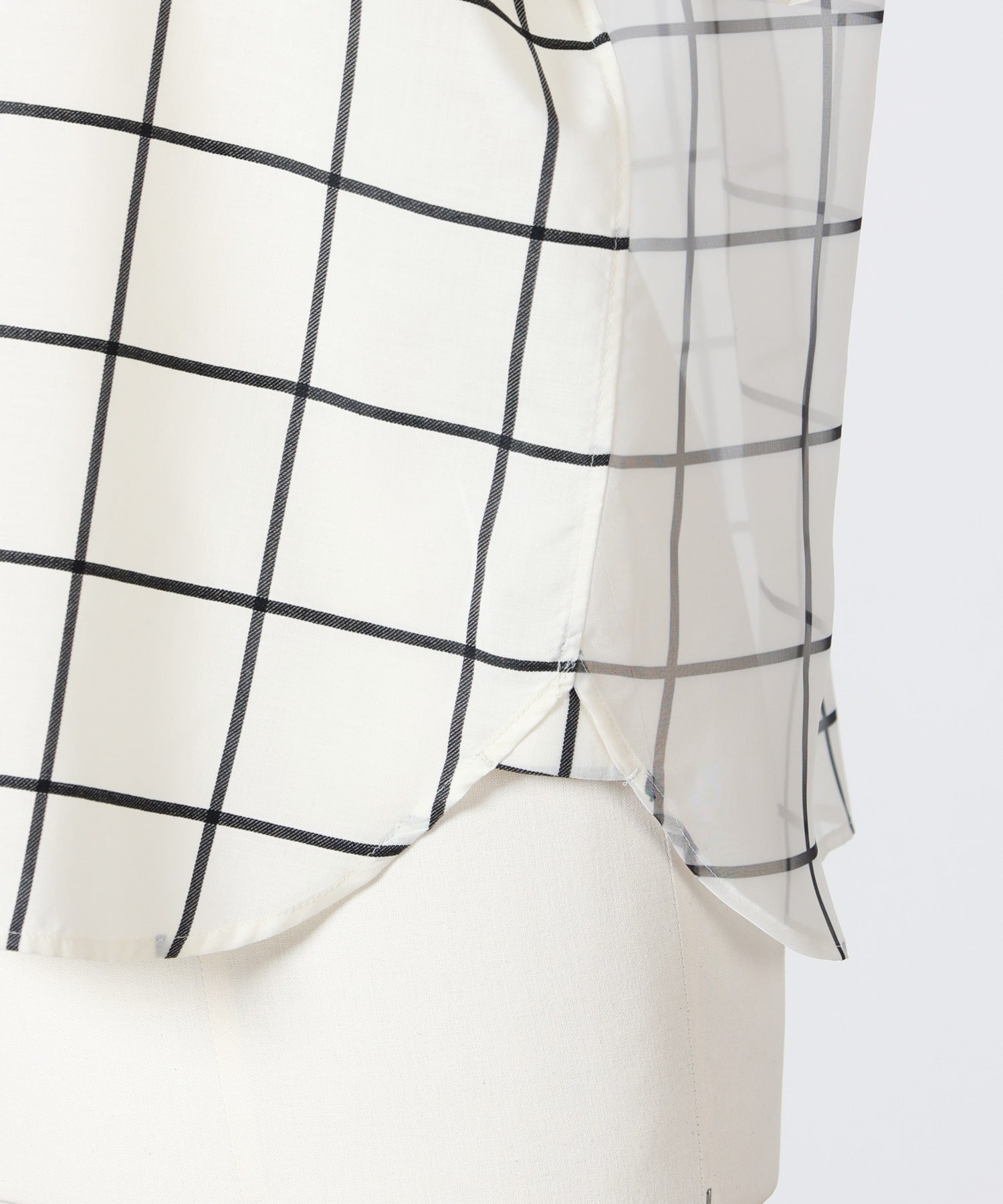 SHEER SLEEVE WINDOWPANE BLOUSE