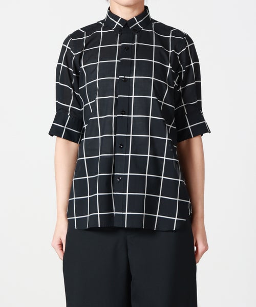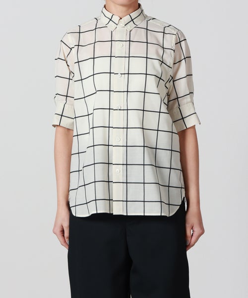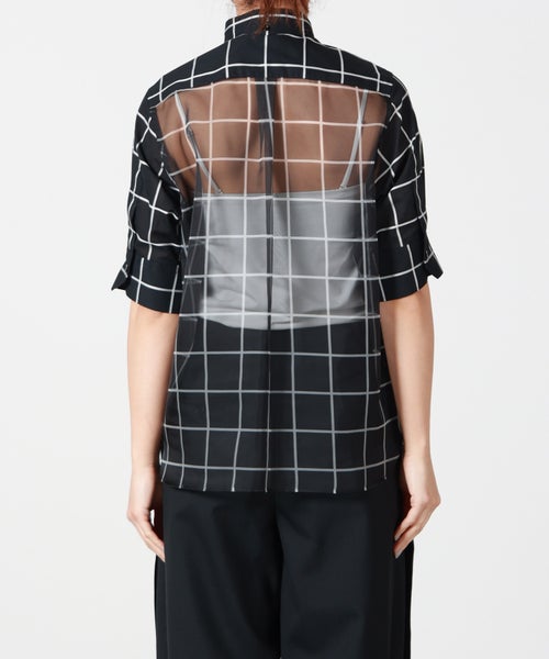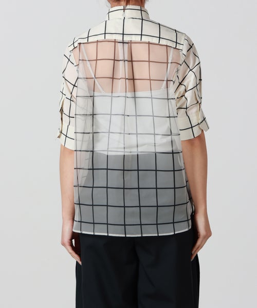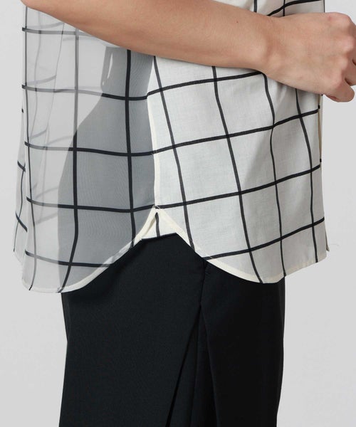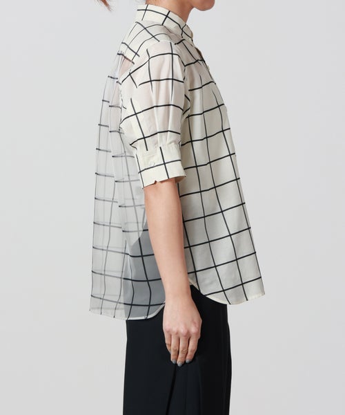 4. 【HYKE(ハイク)】 SHEER BACK WINDOWPANE SHORT SLV BLOUSE