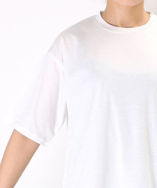 【素材】 撚糸からこだわった糸の持つさらっと感、上品なドレープ、マットな美しい光沢感のあるスムース素材を使用しています。透け過ぎず厚すぎず、しなやかで程よく光沢のあるキレイめな生地を使用しています。