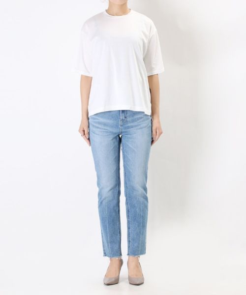 【デザイン】 ゆったりとリラクシーなシルエットに仕上げたTシャツ。JAPAN DENIMオリジナルのピスネームと、バックにあしらったロゴ刺繍をアクセントに。サイドスリット入りの前後差を付けてニュアンスをプラス。袖口をロールアップして着ていただくのもおすすめです。