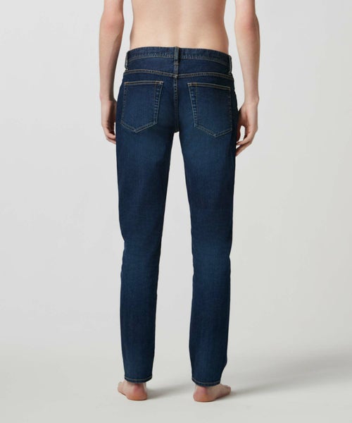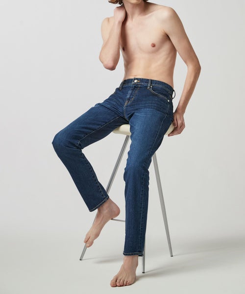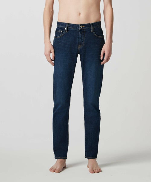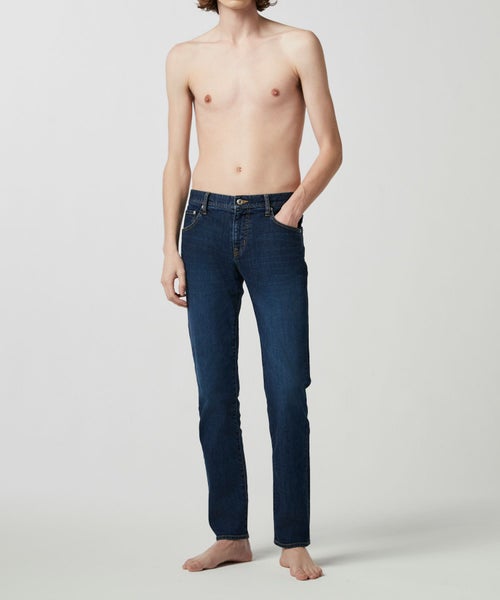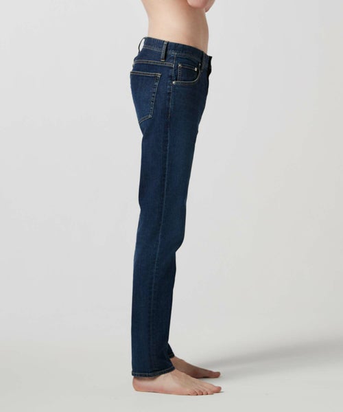 【デザイン】 シルエットと着用感に徹底的に拘ったスリムテーパードシルエットデニム。 全体をシャープに仕上げながらも、身体のラインが出過ぎない程良いゆとりをもたせ、膝下は細く絞り無駄なもたつきを抑えています。
