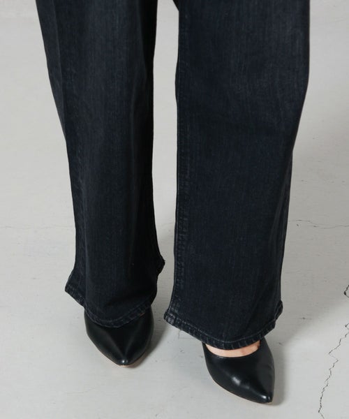 おすすめポイント:シックなブラックカラーで仕上げたのワイドストレートデニム♡ 腰回りはすっきりと、裾にかけて自然に広がるラインが美脚効果を叶えてくれる♡程よいハイウエストが脚長シルエットを引き立て、シンプルなトップスを合わせるだけでスタイリングが完成します&♡オンでもオフでも、モードにもカジュアルにも着こなせる万能デニムです♡