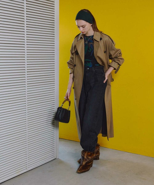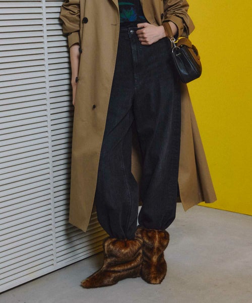 おすすめポイント:今季トレンドのウォッシュの効いたブラックジーンズ×ルーズフィット。 ウエストの華奢さを強調するシルエットが特徴です。
