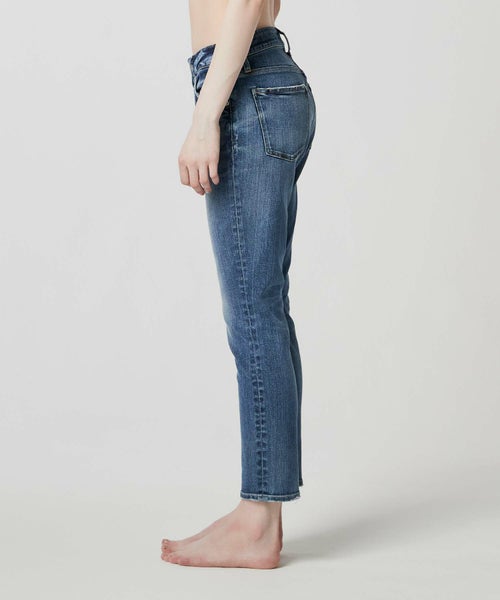 【デザイン】RED CARD(レッドカード)の定番のテーパードシルエットの加工別注モデル。程よいゆとりと美脚感が特徴のシルエットで、ウエストはボディラインに沿うカーブベルトです。別注カラーであるLIGHT INDIGOとMEDIUM INDIGOは、季節問わず合わせやすいお色。ダメージ加工が程よく入っているので全体的に立体感が出てより美脚に見せてくれます。