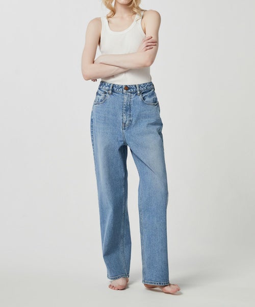 【素材】ストレッチ性の効いた縦落ち感のある生地を使用し、キレイな見た目と履き心地の良さにこだわっています。ウォッシュの効いたライトインディゴと、ビンテージ感のあるミディアムインディゴの2色展開です。