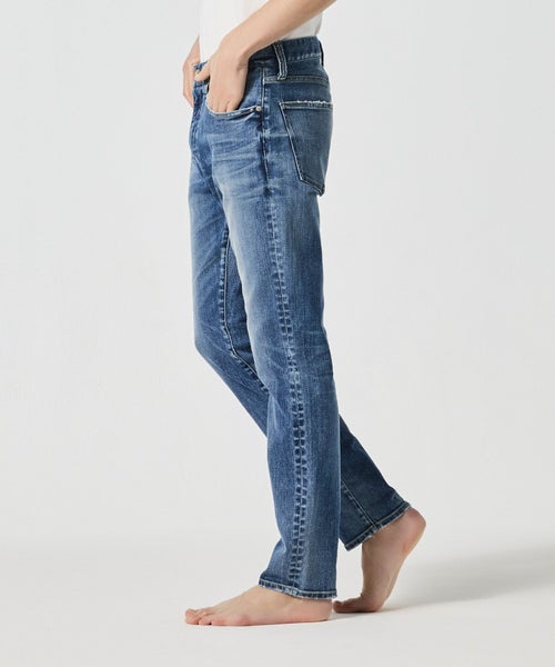 【素材】カイハラの3者混ハイパワーストレッチデニム地採用で、従来のポリウレタンストレッチより伸縮性も大幅にUPされています。縦目がしっかりと見える生地で、縦のラインが美しく、淡いカラーでも足が細く見せてくれます。加工感はリアルヴィンテージのような絶妙な色でレディースにはない立体ヒゲを入れています。