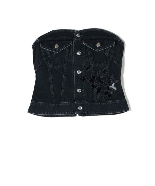 4. 【JAPAN DENIM(ジャパンデニム)】 TANAKA_FLOWER EMBROIDERY DENIM BUSTIER