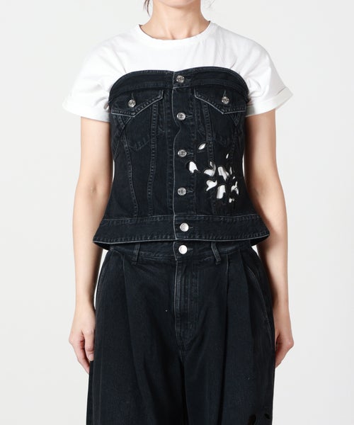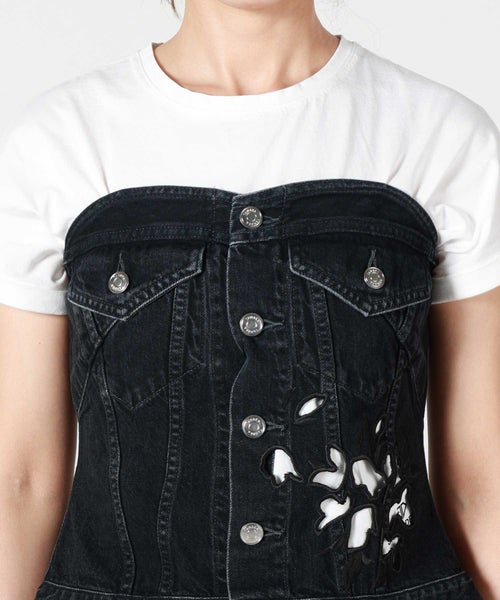 【JAPAN DENIM(ジャパンデニム)】 TANAKA_FLOWER EMBROIDERY DENIM BUSTIER