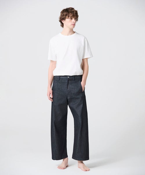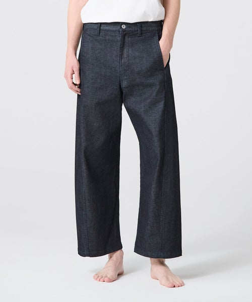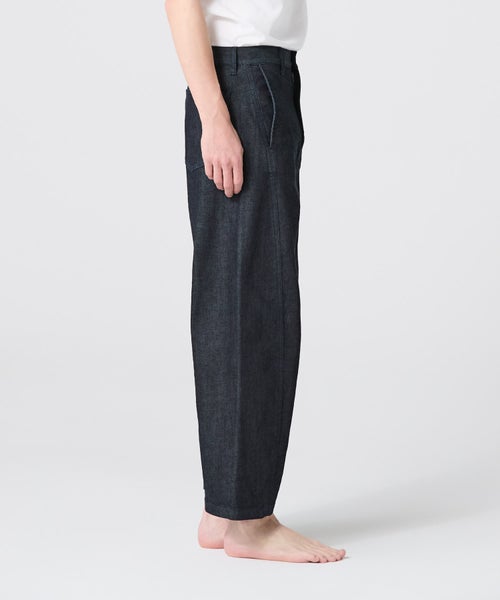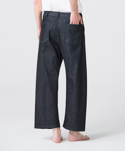 自然環境保護の為、エコ染色システムによってインディゴ染色された糸で織られた生地を積極的に採用。エコ染色システムは、染色工程における全ての廃水を、瀬戸内海水質規制に基づき排水処理を行い、重油使用量を従来の使用量約40%削減出来るボイラーシステムを導入し、常温電解水を使用することで、洗浄薬材の軽減やCO2排出削減に寄与し環境に優しい染色方法です。