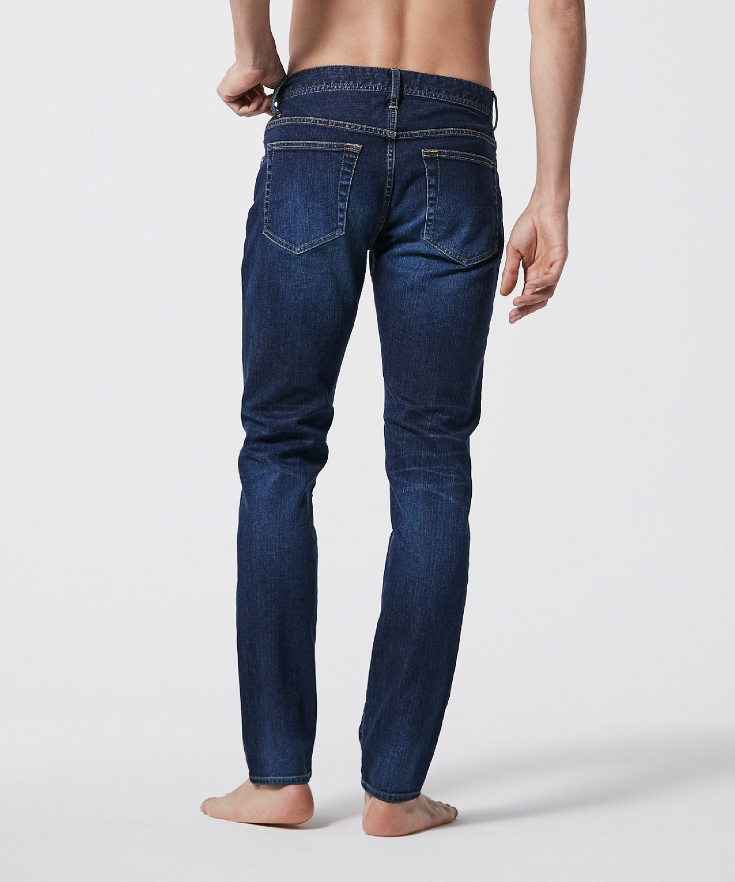 シルエットと着用感に徹底的に拘ったスリムテーパードシルエットデニム。 全体をシャープに仕上げながらも、身体のラインが出過ぎない程良いゆとりをもたせ、膝下は細く絞り無駄なもたつきを抑えています。素材には程よい伸び感のある10.5ozのストレッチデニムを使用することでストレスのない快適な履きを実現。MEDIUM INDIGOとWASHED BLACKは10年、LIGHT INDIGOは15年履きこんだようなイメージのヴィンテージ感に。フロントのタックボタンにはオリジナルボタンを使用し、スレキにはオーガニックスレキを使用するなど細部までこだわり抜いた1本。