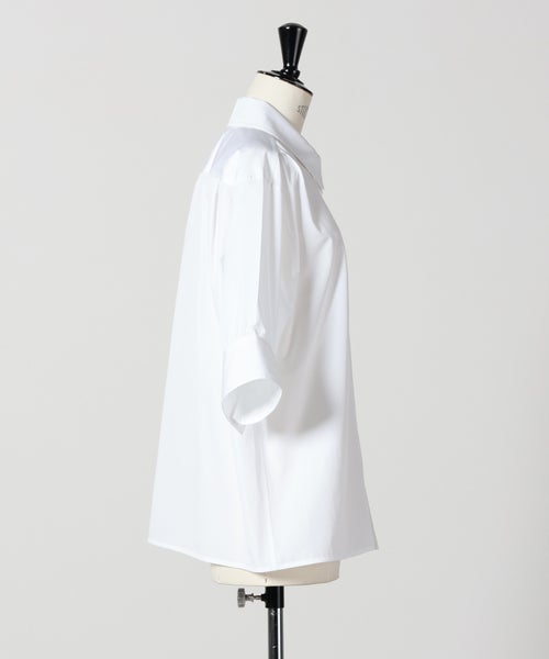 【デザイン】JIL SANDER(ジルサンダー)のブラウス。クラシックなレギュラーカラーに、ボタンフロント仕様を採用したオーセンティックなデザインです。ショルダーはレギュラーフィットで、肩まわりをすっきりと見せるバランスに設計。ショートスリーブとストレートヘムラインが軽やかで端正な印象を与えます。無地のプレーンカラーだからこそ、シルエットの美しさと仕立ての良さが際立つ一枚。ミニマルで流行に左右されにくく、オン・オフ問わず活躍します。スラックスと合わせれば知的でクリーンな装いに、デニムやワイドパンツと合わせれば抜け感のあるモダンなスタイルに。裾はストレートカットのため、タックインでコンパクトにも、アウトでラフにも着こなせます。ベーシックな設計のため、サイズ選びは肩幅と身幅のバランスを目安にご検討いただくのがおすすめです。