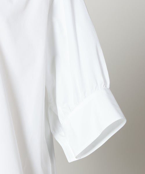 【素材】コットン100%素材を使用。触れた瞬間に感じるさらりとした自然な風合いと、肌に優しくなじむ柔らかさが特徴です。通気性に優れ、汗ばむ季節でも快適な着心地をキープ。適度なハリ感があり、身体のラインを拾いすぎず、きちんとした印象を保ちます。見た目はマットでクリーンな表面感があり、シンプルな無地デザインをより上質に引き立てます。天然素材ならではの心地よさと扱いやすさを兼ね備えた、長く愛用いただける一着です。