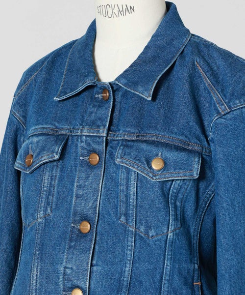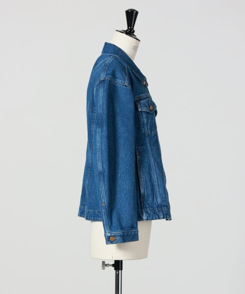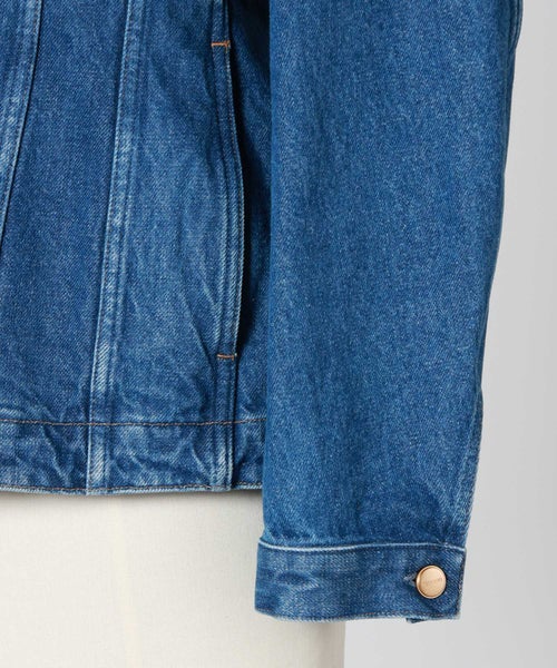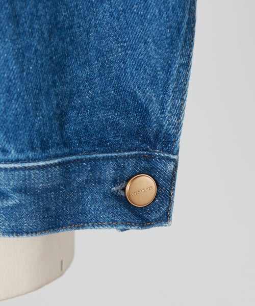 【素材】 コットン100%のデニム素材は、しっかりとしたハリ感がありながらも、着込むほどに身体に馴染む自然な風合いが魅力です。触れた瞬間はややドライでタフな質感ながら、着用を重ねることで柔らかさが増し、自分だけの風合いへと変化していきます。見た目はクリーンでマットな印象を保ちながら、適度な厚みがあるためシルエットを美しくキープ。季節の変わり目の羽織りとしても活躍し、長く愛用できる一着です。