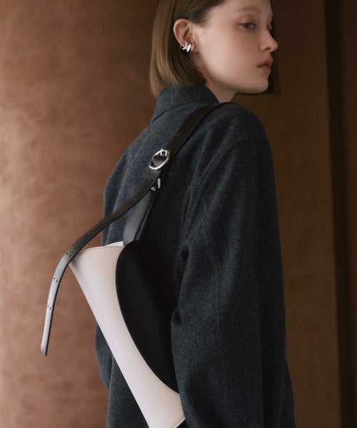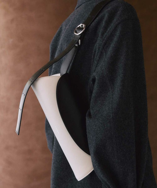 日本の伝統的な修復技法「金継ぎ」にインスパイアされた配色。白いボディに重なる黒のフラップが、異なる2つのバッグのパーツを漆で繋いだかのように見せています。モダンでありながら和の美意識を感じさせるデザインです。