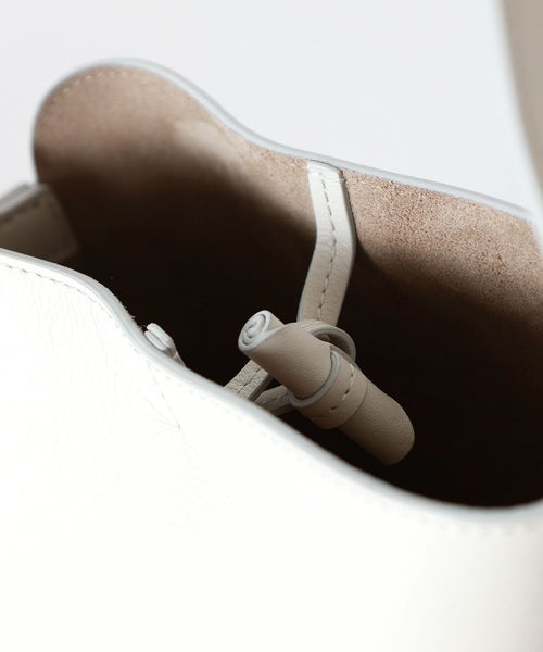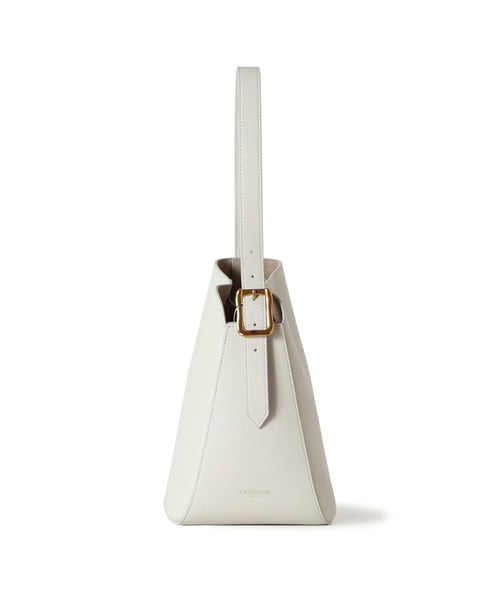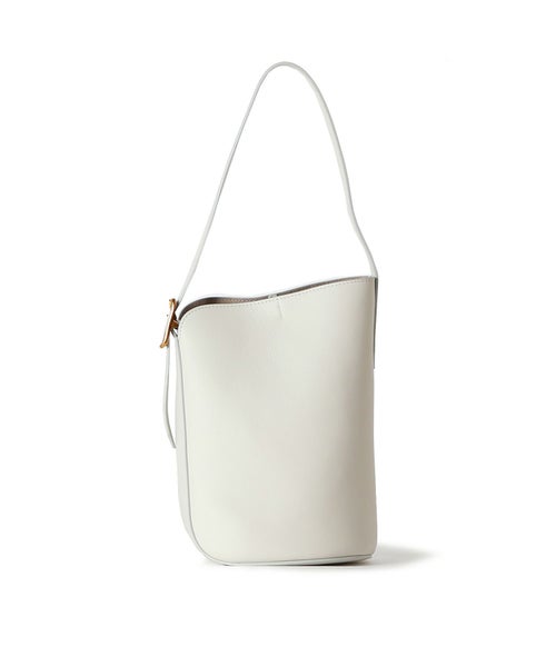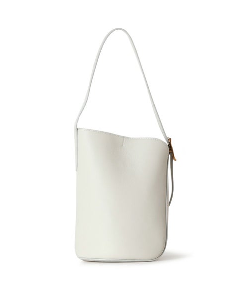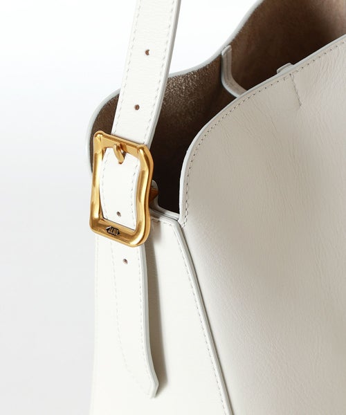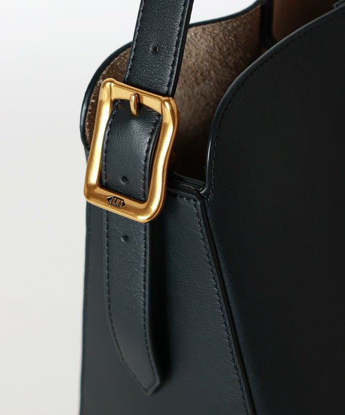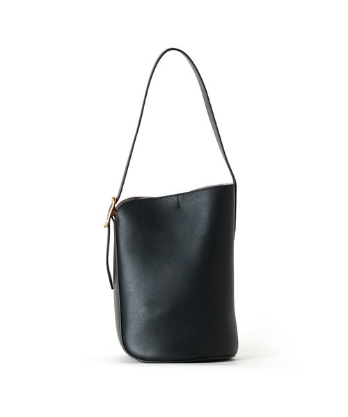 【デザイン】J&M DAVIDSON (ジェイアンドエムデヴィッドソン)のバッグ。伝統的な矢筒からインスパイアされたショルダーバッグ、クイバーバケット。極力シームを省くことで美しい曲線を描き、独特なシルエットを生み出します。無駄を省いたシンプルなボディに、ベルトのアーカイブから復活したロゴ入りバックルがアクセントになっています。内部には小さなポーチが付き、シングルベルトストラップは長さ調整が可能で、ハンドバックとショルダーバックの2WAY仕様です。