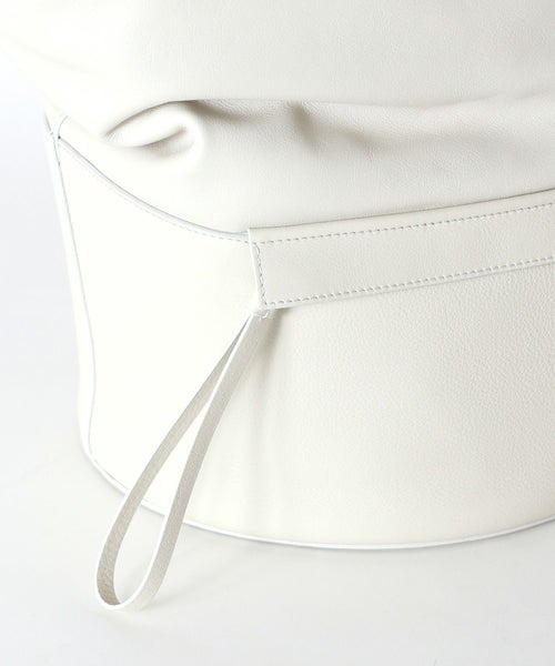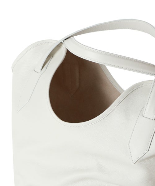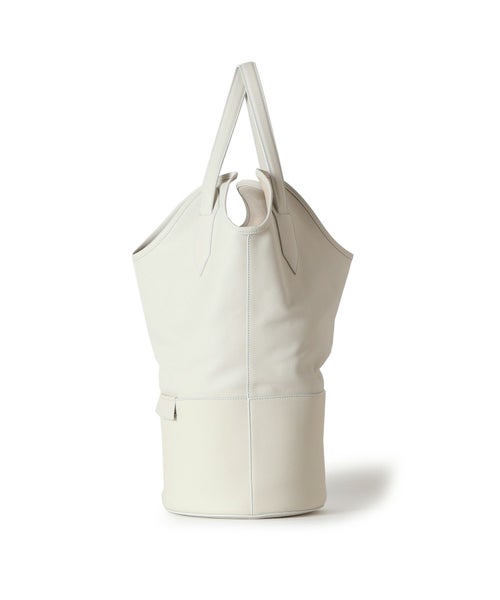 【デザイン】J&M DAVIDSON (ジェイアンドエムデヴィッドソン)のバッグ。機能を計算しデザインと融合させたバケットトートバッグ。ハンドルはバッグ本体の中央を波打つ形状にすることでショルダーバッグも可能に。体側にくる背面には貴重品を入れられるジップ付ポケットが付いています。外ポケット有。