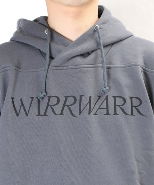 【デザイン】 立体的なフードのシルエットが特徴のスウェットパーカー。ドイツ語で混乱を意味する“WIRRWARR”の文字がプリントされたキャッチーなデザインの一着。ややゆとりを持たせたスタンダードなシルエットです。