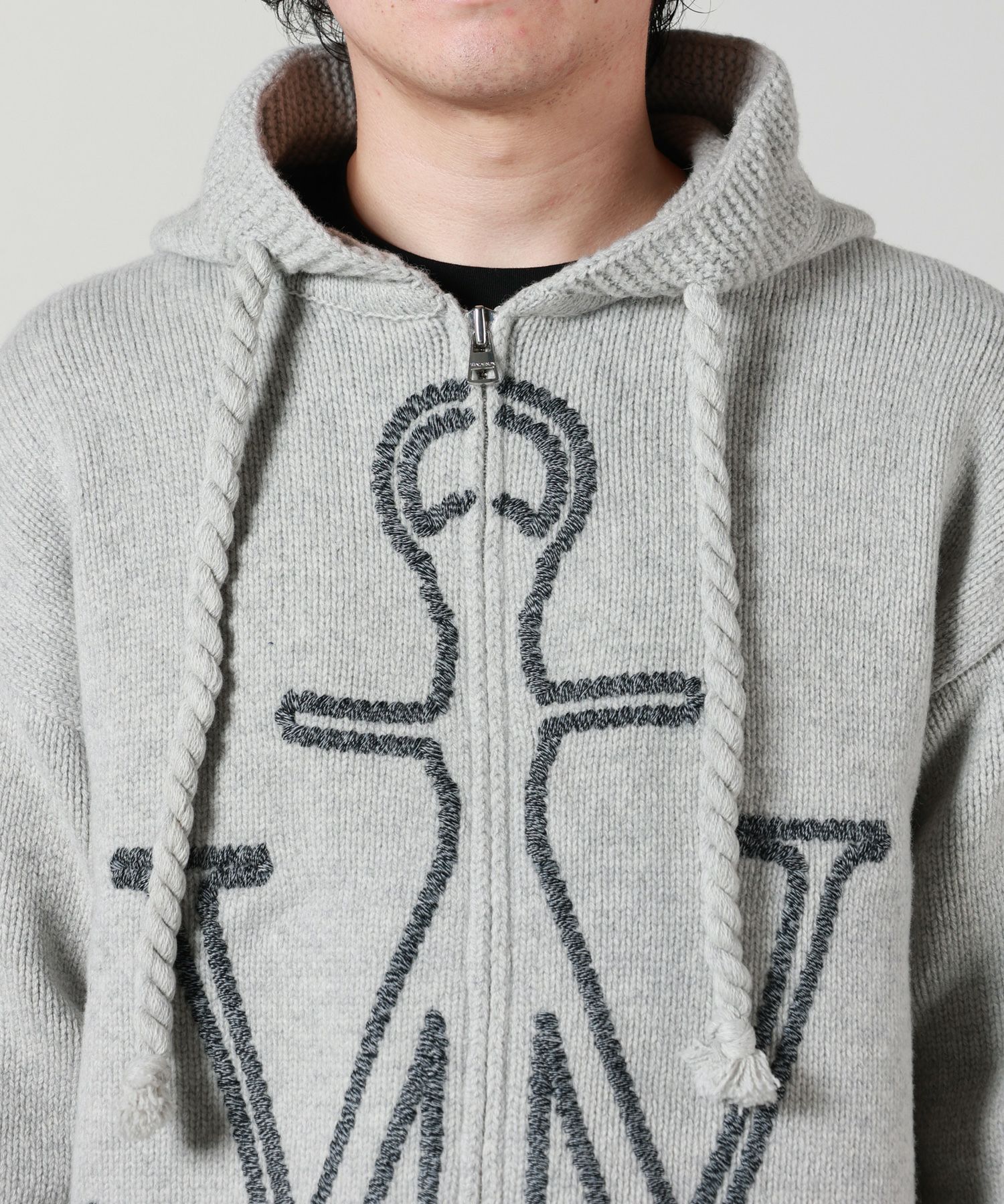 【デザイン】 JW Anderson(ジェイダブリューアンダーソン)のパーカー。フロントにさりげなく同系色の糸でアンカーロゴのデザインを施したニットパーカーです。ミドルゲージの編地と大き目に作られたドローコードで、全体の印象はざっくりした雰囲気に仕上げられます。ブルゾンのように羽織としてはもちろん、ブルゾンの中に着用するインナーとしても使用できる汎用性の高さも魅力。ダブルジップにもなっているので、様々なコーディネートでアイテムをお楽しみいただけます。