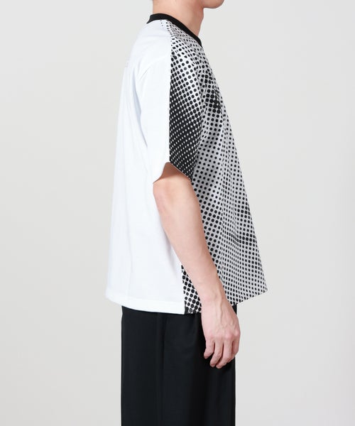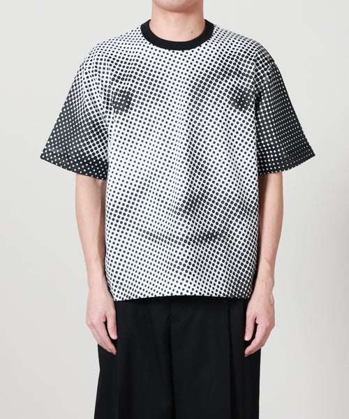 【デザイン】 kolor(カラー)のTシャツ。コレクションでもかなり目立っていたデザインTシャツです。プリントのドット模様を用いて人間の顔を映し出しているアート性の高いデザイン。シルエットは程よくゆとりを持たせた設計で、身体のラインを拾いにくく、リラックス感のある着心地が叶います。1枚で着てもサマになる仕上がりで、一枚使いから、レイヤードスタイルにも新鮮さを加えてくれるような一着に仕上がっております。