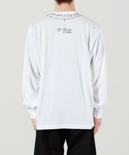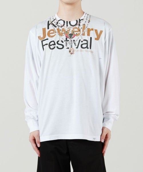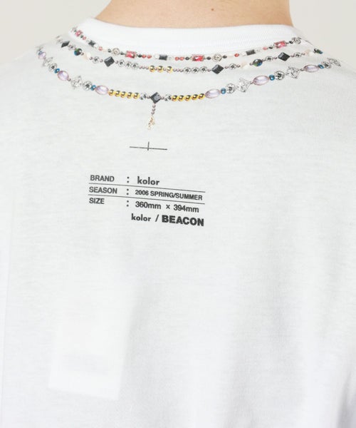 【デザイン】kolor BEACON(カラービーコン)のTシャツ。 首元に遊び心あふれるジュエリープリントを施した長袖Tシャツです。シンプルながらも印象的なデザインがコーディネートのアクセントに。レギュラーフィットで程よいゆとりがあり、一枚でもレイヤードでも活躍します。カジュアルからモードスタイルまで幅広く合わせやすい一着です。