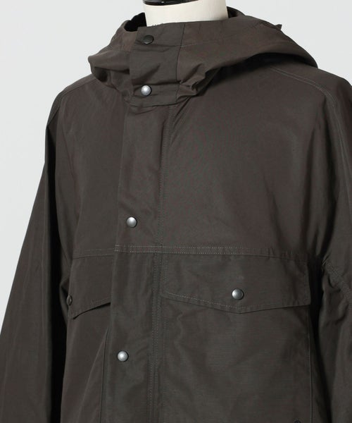 【デザイン】 LEMAIRE(ルメール)のコート。デザインはシンプルながら、大き目のポケットやミニマルなフードのデザインが特徴的なフーデッドレインコートです。ナチュラルに撥水力のある生地に麻を組み合わせた生地による、他にはない色味の出方と表情も魅力です。一見カジュアルやミリタリーという印象が強いアイテムでありながら、ボタンやステッチを生地に馴染む色にすることでミニマルな仕上がりとなっています。それでいて通気口や裾のドロストなど、便利な機能性も持ち合わせており、ついつい手に取ってしまうような気の利いた一着です。